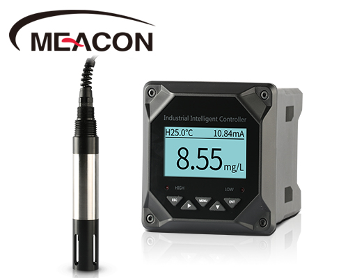 溶氧仪由传感器和显示仪表两个部分组成。溶解氧分析仪传感部分是由金电极(阴极)和银电极(阳极)及氯化钾或氢氧化钾电解液组成,氧通过膜扩散进人电解液与金电极和银电极构成测量回路。当给溶解氧分析仪电极加上0.6~0.8V的极化电压时,氧通过膜扩散,阴极释放电子,阳极接受电子,产生电流,整个反应过程为: