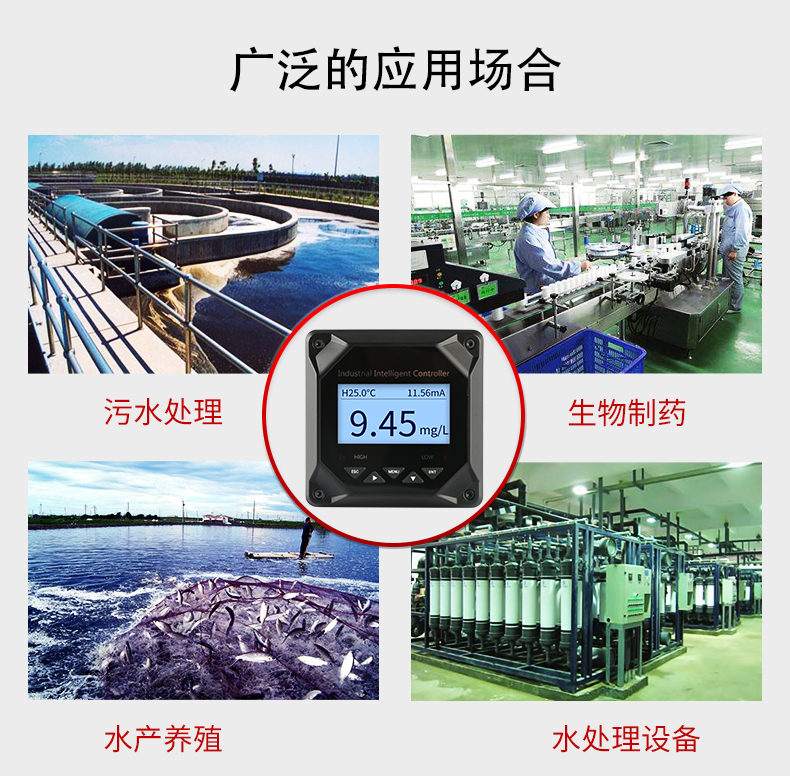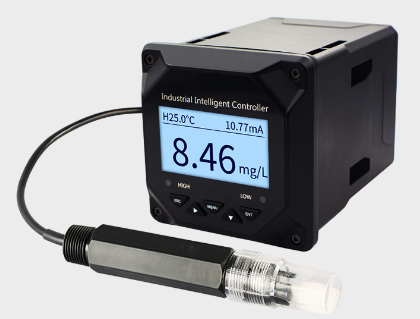 溶氧仪由传感器和显示仪表两个部分组成。溶解氧分析仪传感部分是由金电极(阴极)和银电极(阳极)及氯化钾或氢氧化钾电解液组成,氧通过膜扩散进人电解液与金电极和银电极构成测量回路。当给溶解氧分析仪电极加上0.6~0.8V的极化电压时,氧通过膜扩散,阴极释放电子,阳极接受电子,产生电流,整个反应过程为: