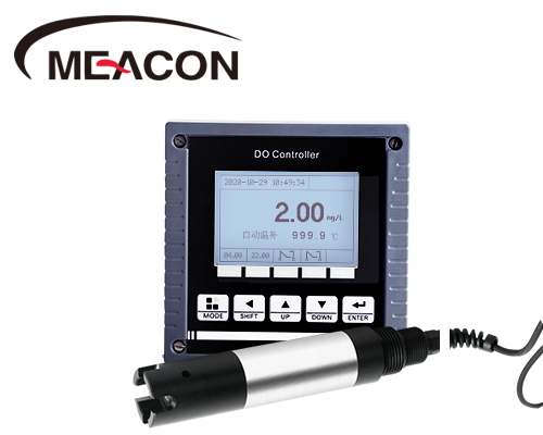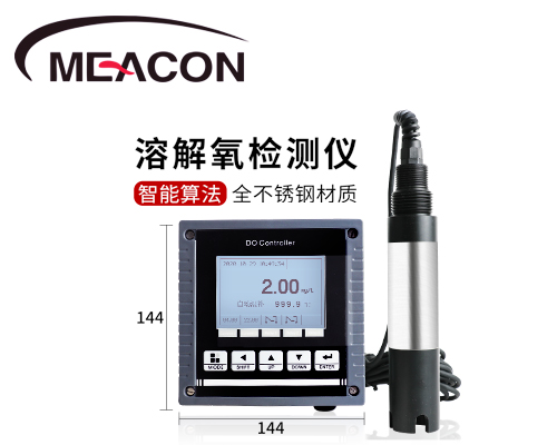 溶氧仪由传感器和显示仪表两个部分组成。溶解氧分析仪传感部分是由金电极(阴极)和银电极(阳极)及氯化钾或氢氧化钾电解液组成,氧通过膜扩散进人电解液与金电极和银电极构成测量回路。当给溶解氧分析仪电极加上0.6~0.8V的极化电压时,氧通过膜扩散,阴极释放电子,阳极接受电子,产生电流,整个反应过程为: